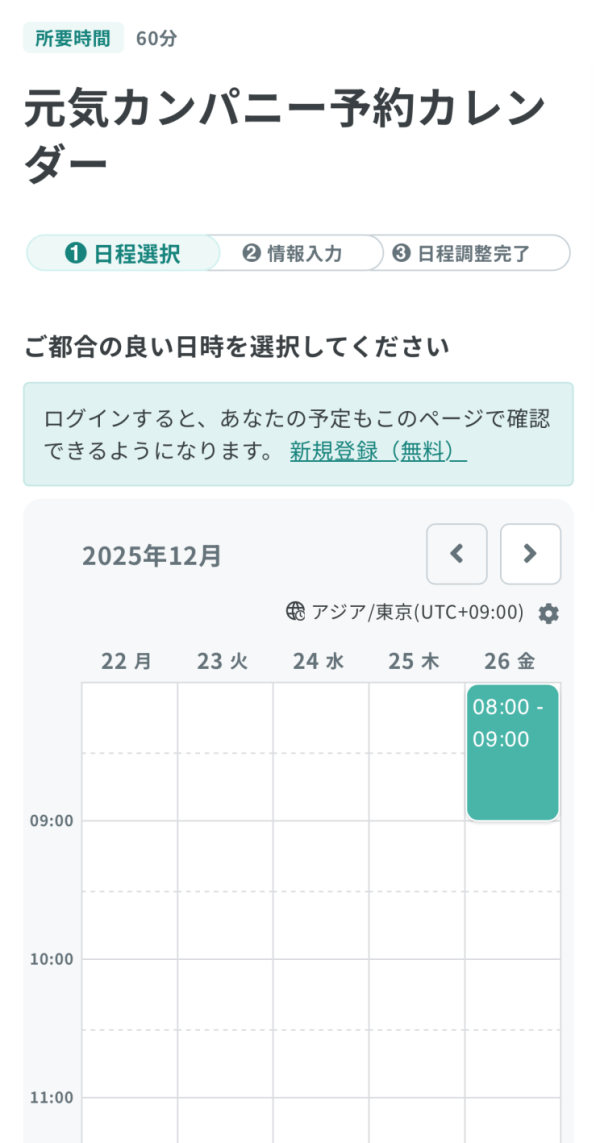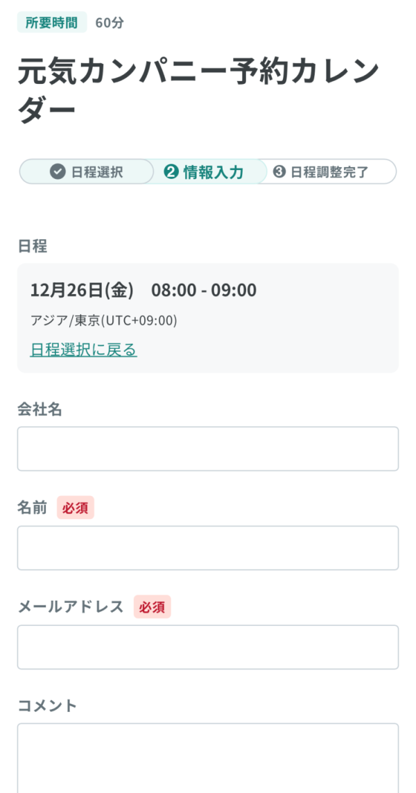 「上記の内容で日程調整を完了する」をクリックして、内容を確認してください。
